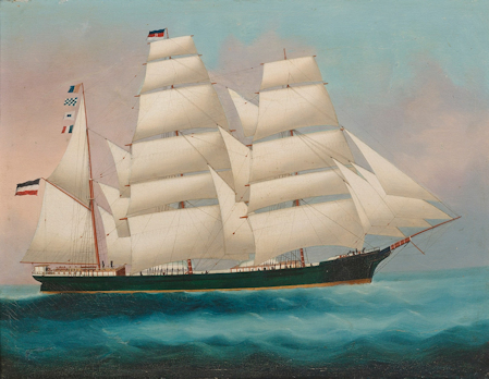 Kapteenintaulu Richard Rickmers. Maalannut kiinalainen merimaalari A Pun Woo 1800-luvun lopussa. Wikimedia Commons.