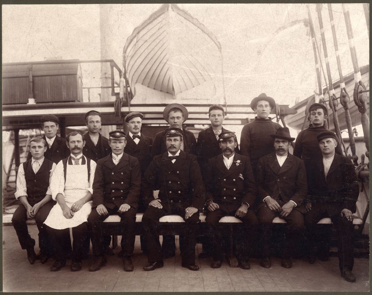 Kuvassa eturivissä keskellä on päällikkö Karl Lindberg. © Merikapteeni Hannu Vartiainen.