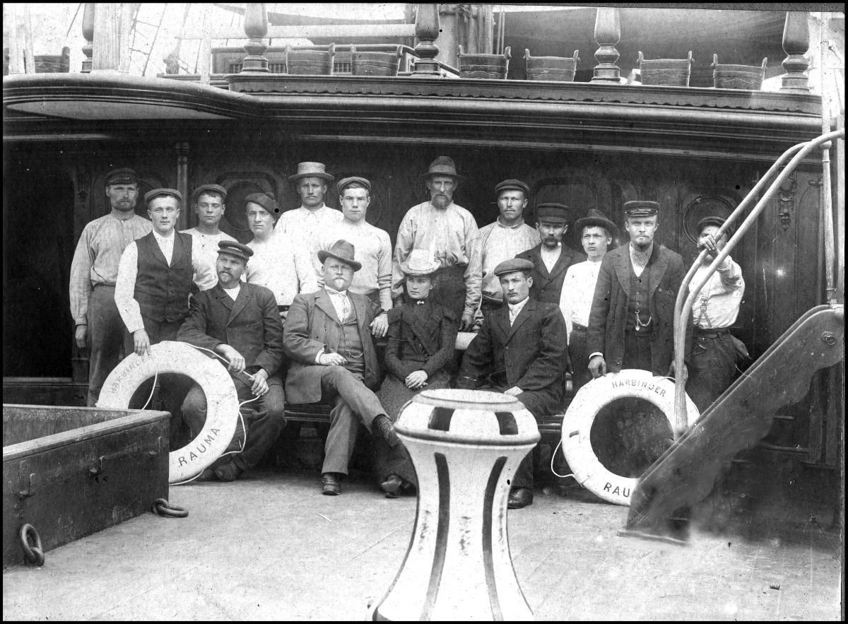 Keskellä aluksen päällikkö P.A. Renfors vaimoineen. © Merikapteeni Hannu Vartiainen.