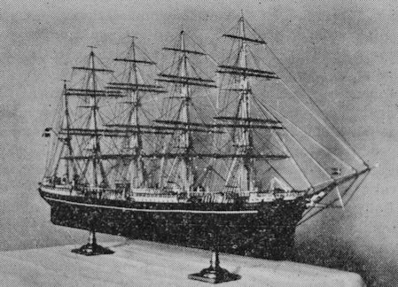 John Ericksonin hieno pienoismalli. Mallin rakentamiseen meni aikaa puolitoista vuotta. Pituutta sillä on 88 cm. Sama tekijä on tehnyt ja lahjoittanut myös Toivo-laivan pienoismallin Ouluun. Kuva: Nykyaika 7/1931, 1.7.1931. Kansalliskirjaston digitoidut aineistot.