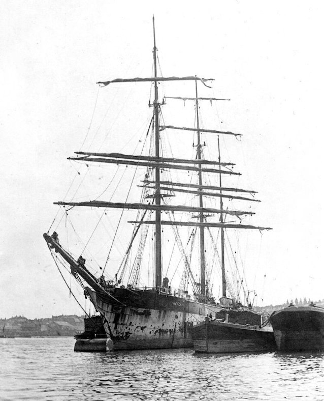 Neitsytmatka tehtiin kivihiililastissa Shieldsistä Valparaisoon 13.12.1881 - 6.3.1882.