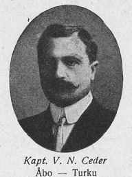 Merikapteeni V.N. Ceder (1866 - 1928). Hän toimi päällikkönä parkkilaivassa Australia 1891 - 1897. Turun merenkulkuopiston (Åbo Navigationsinstitut) rehtori 1925 - 1928. Suomen Merenkulku - Finlands Sjöfart n:o 25/1921.